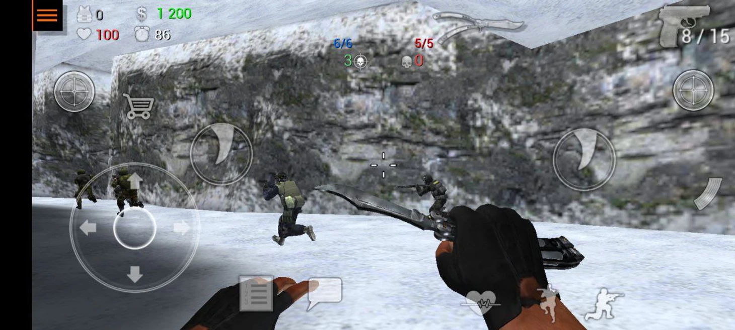 На выбор есть много карт, например Village, NewDesert, и Desert3. Оригинально, правда? Нет! Разработчики так переименовали карты Italy, Dust 2 и Mirage. А на Нюке и Офисе они даже не стали менять названия. В самом матче также перегруженный интерфейс. Вроде бы есть кнопки стрельбы, но при этом включен авто-аим. Бабочку или керамбит можно купить в любом матче за заработанную в нем валюту.