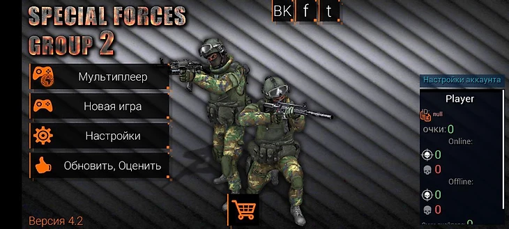 На входе нас встречает максимально костыльное меню: ужасные шрифты, ужасный интерфейс, ужасные модели. Разработчики даже поленились вставить логотипы соцсетей, а потому мы видим лишь названия «ВК», «f» и t». Минималистичненько.