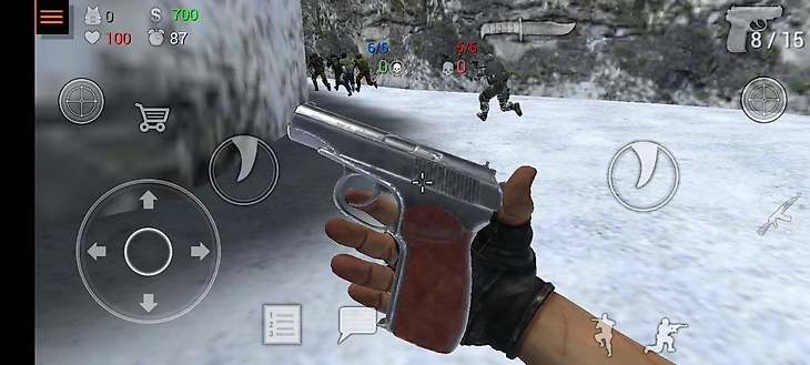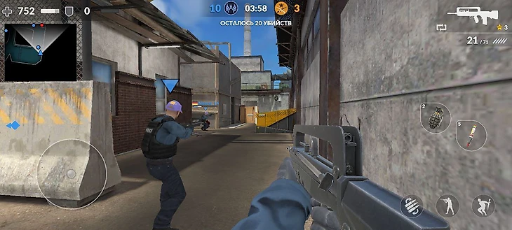 В игре типичное для мобильного шутера управление. Все кнопки раскиданы по бокам, а управлять и стрелять очень сложно, так как одновременно прицеливаться и держать кнопку огня зажатой невозможно. В итоге все перестрелки похожи на танковые бои: сначала прицеливаешься и лишь спустя некоторое время стреляешь.