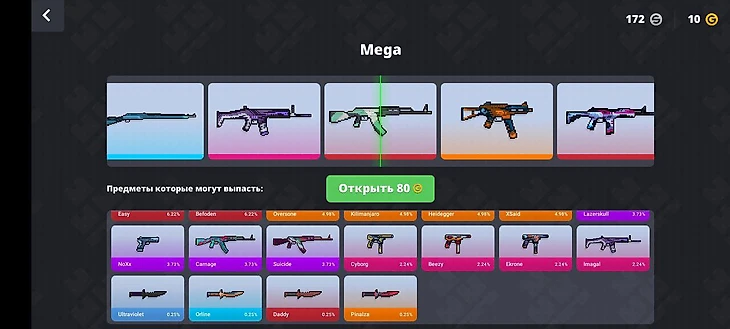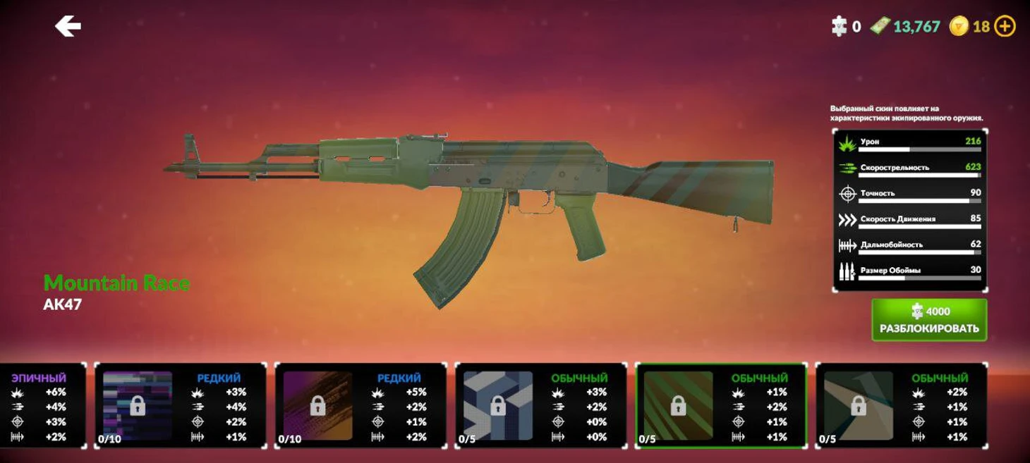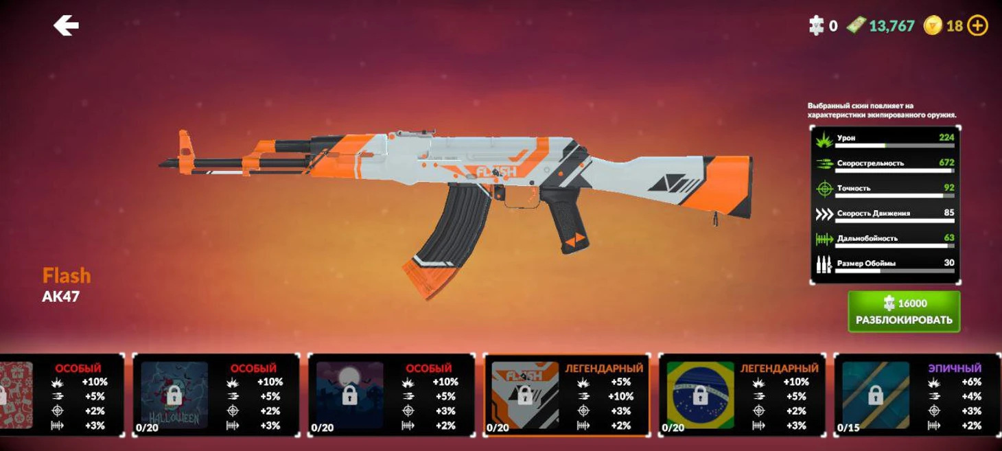 В игре 2 типа валюты: золото и серебро. Первую можно получить только через донат или посмотрев рекламу, вторая выдается за серебро. К счастью, все деньги можно потратить только на внешний вид персонажа и скины на пушки, которые здесь отличаются от скинов в КС. В матчах все играют с равными пушками, а потому баланс сохраняется.