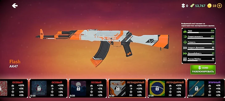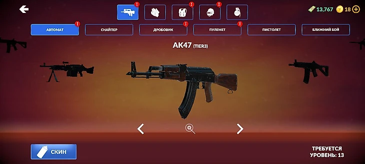 Многие скины в игре тоже взяты из CS. Сразу несколько из них – из коллекции «Азимов». Но главный минус игры – пей-ту-вин система. В каждом матче игроку доступны лишь заранее купленные им пушки, например АК-47 доступен лишь на 13-м уровне, а на 41-м и вовсе можно купить гранатомет. Более того, игра призывает донатить не только на покупку уровней и пушек, но и на их прокачку, так как у каждого девайса есть аж 15 уровней!