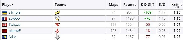 У Vitality уже второй год подряд плохие результаты в первой половина сезона. Но если в прошлом году были лишь проблемы с командными результатами, то теперь Zywoo просел и индивидуально. Его рейтинг – 1,18, причем с лучшими показателями на групповом этапе Blast и на РМР-турнире – не самых важных и сложных турнирах, где команда не играла против топов. Симпл же как всегда стабильно доминирует. Он – лучший в мире с рейтингом 1,30 за первую половину сезона.