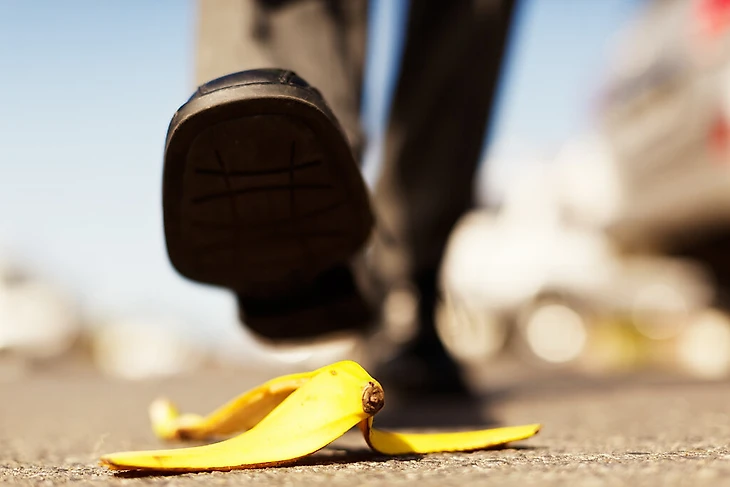 Падение на банановой кожуре – старейшая шутка в кино. Хотя на самом деле так поскользнуться сложно
