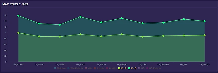 Последний блок – Map Stats Chart. Он визуализирует информацию из предыдущей таблицы на графике.