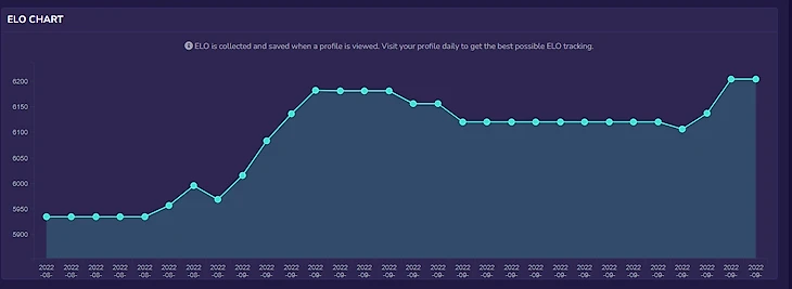 График с Эло. Важно: Фейсит Статс сохраняет информацию об Эло для этого графика только, если кто-то просматривает профиль на сайте. Если хотите, что ваша стата Faceit сохранялась каждый день, то и открывать свою страницу будет нужно каждый день.