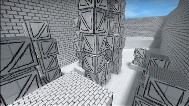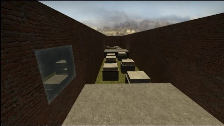 Паркур карта сделана в черно-белом стиле и проходится очень просто. На ней совсем нет сложных участков, а многие места можно пройти даже без баннихопа, так как нужно просто перепрыгивать с одного препятствия на другое.