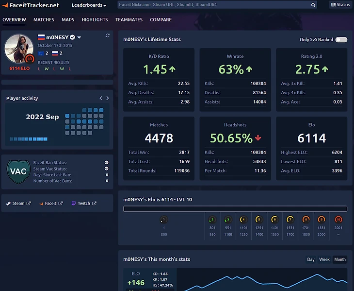 Неудивительно, что у такой популярной платформы появились сторонние сервисы, расширяющие ее функционал. Один из таких сервисов – Faceit Tracker или просто Фейсит трекер. Давайте разбираться, как он работает.