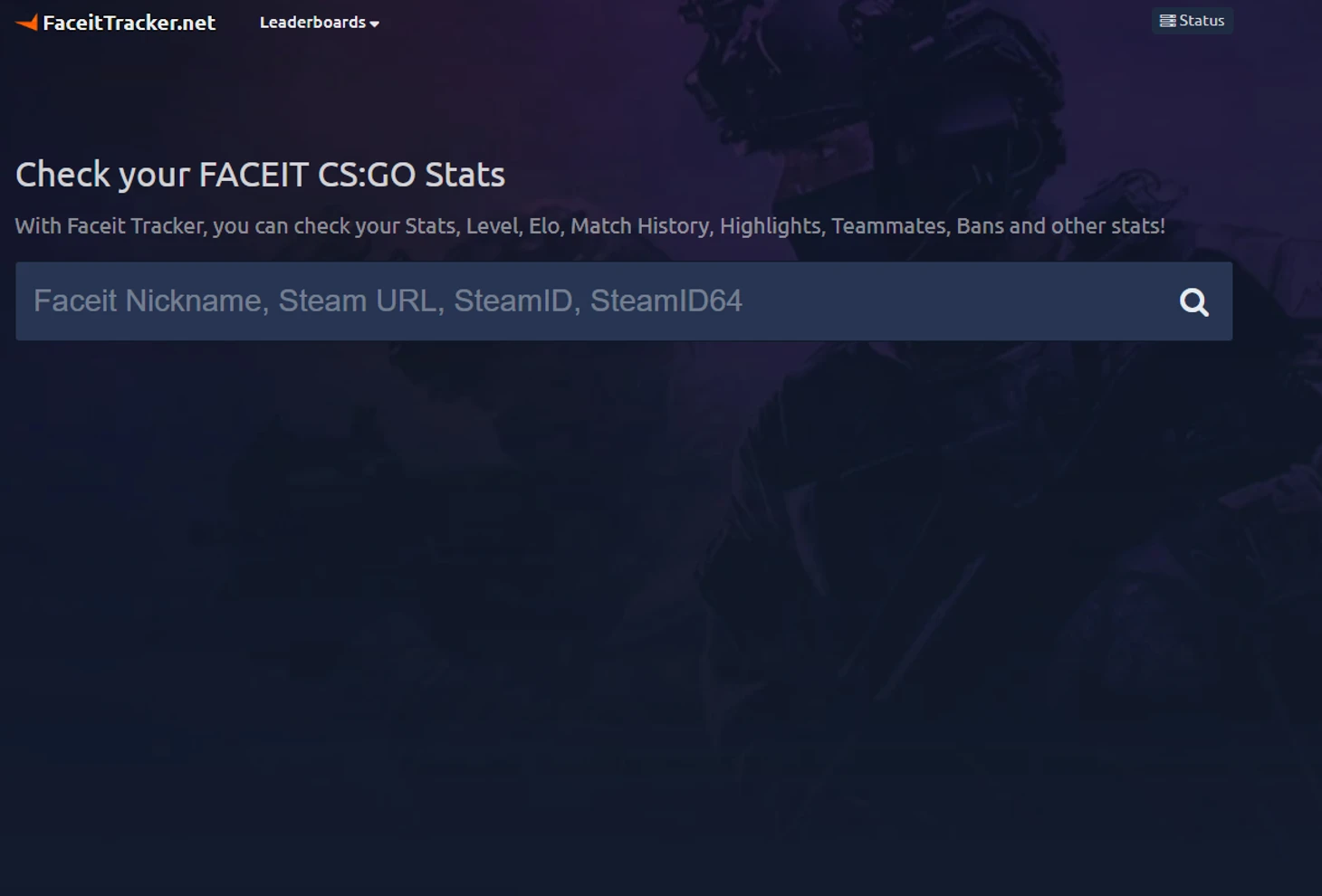 При заходе на главную страницу вы увидите строку поиска, куда нужно вставить ник человека на Фейсите или ссылку на его профиль Steam/сам Steam ID.