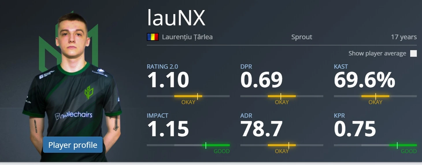 Спраут, который обычно собирал очень опытные составы, за год продвигает уже второго юнца. Сначала был marix, который отправился в академию ОГ, но его заменили на еще более впечатляющего lauNX. С его эмкой или калашом точно лучше не встречаться. Возможно, самый талантливый румын в CS GO.
