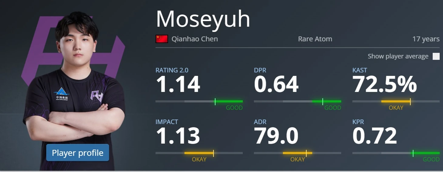 8) Moseyuh Китаец из ниоткуда. Rare Atom вытащили его с 5Е (китайский аналог фейсит или ЕСЕА) и он за полгода превратился в лидера команды. Да, возможно Starry или Nelly из Линнов посильнее сейчас будут, но потенциал у Моисея очень и очень высок. А учитывая, что в квале все команды для его RA по силам, то шансы попасть на мэйджор очень приличные.