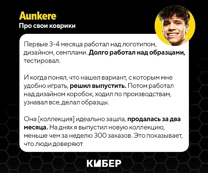 Потом я попробовал открыть свой бренд в киберспорте. И начал с ковриков, так как играл на всех ковриках, знаю, каким должен быть качественный коврик. Спросил у ребят на Твиче, хотели ли бы они, чтобы я выпустил коврики, поддержат ли они меня.