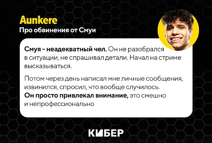 – Потому что Смуя – неадекватный чел. Он не разобрался в ситуации, не спрашивал детали. Начал на стриме высказываться. Потом через день написал мне в личные сообщения, извинился, спросил, что вообще случилось.
