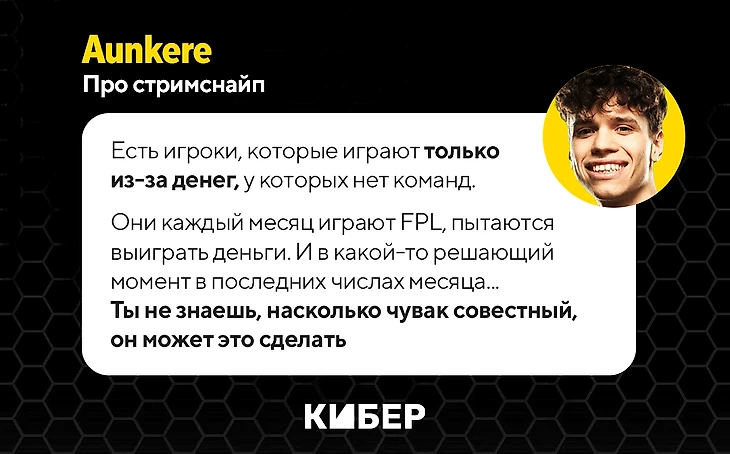 – Не факт, что занимаются. Но слушай, есть игроки, которые играют только из-за денег, у которых нет команд. Они каждый месяц играют FPL, пытаются выиграть деньги. И в какой-то решающий момент в последних числах месяца... Ты не знаешь, насколько чувак совестный, он может это сделать.