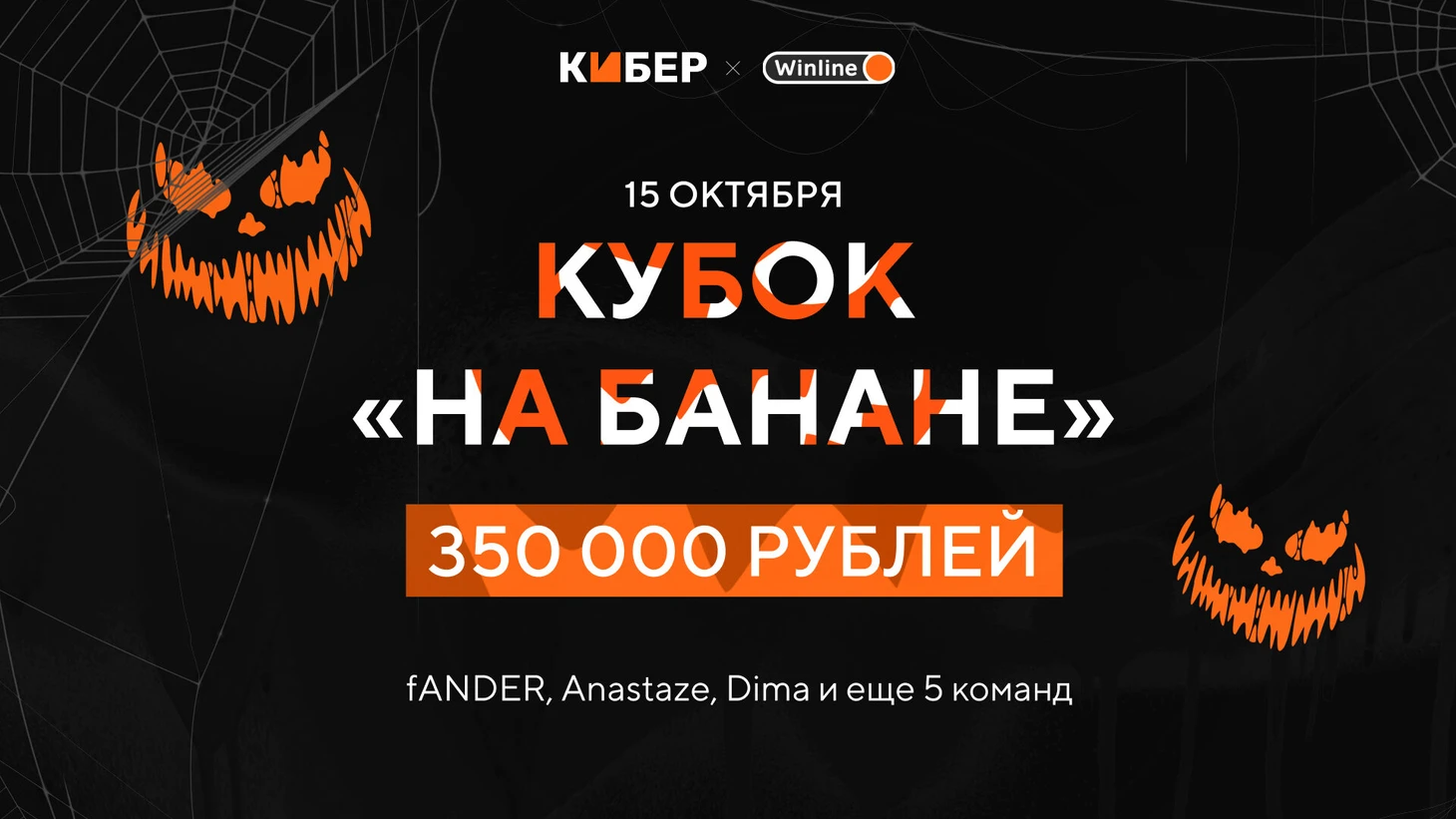 15 октября стартует турнир «На банане», который ну никак нельзя пропустить. На нем сыграют ваши любимые стримеры: fANDER, Anastaze, Dima и еще много других. Парни сразятся друг с другом за 350 тысяч рублей в формате 2х2 Single Elimination – так что права на ошибку не будет. Подробнее о чемпионате от Кибера и Winline вы можете почитать здесь.