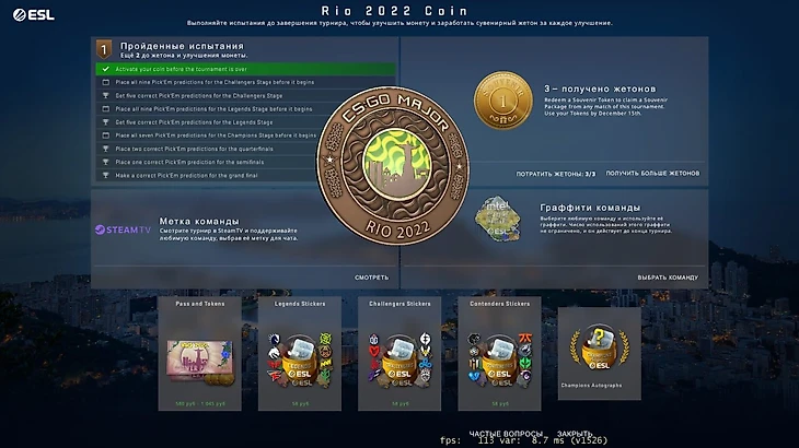 Жетон выдается за прохождение трех миссий. А еще жетоны можно докупать в неограниченном количестве – во время и после турнира, пока предметы с мейджора не удалят из игры.