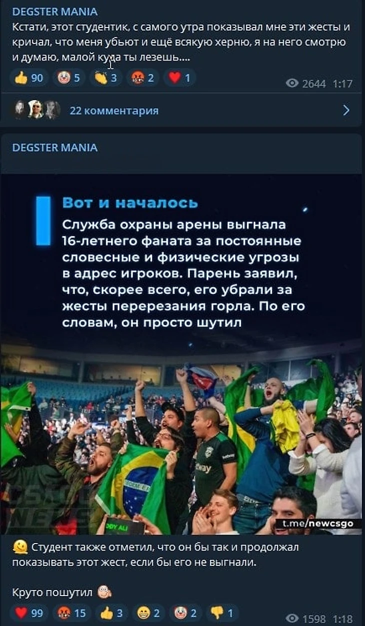 А некоторым они даже угрожали расправой! Опять ситуация с degster. Но не нужно говорить, что с этим игроком что-то не так. Абдул просто ведет свои социальные сети наиболее активно, и рассказывает обо всем, что там происходит.