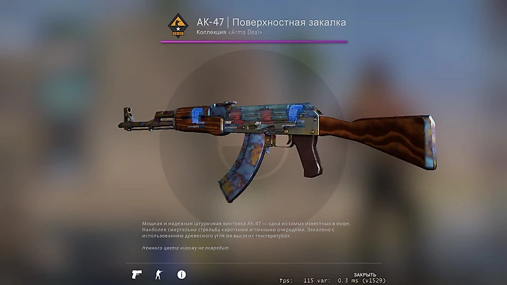 И последний новый скин в коллекции Симпла – AK-47 Поверхностная закалка. На торговой площадке скин стоит всего 10 тысяч рублей, но у Костылева его самая редкая версия. 670 паттерн стоит около ста тысяч. На нем также есть две голографические наклейки Титан за 3 миллиона рублей и 2 обычные Ibuypower за 400 тысяч. Общая стоимость скина около 3,5 миллионов рублей.