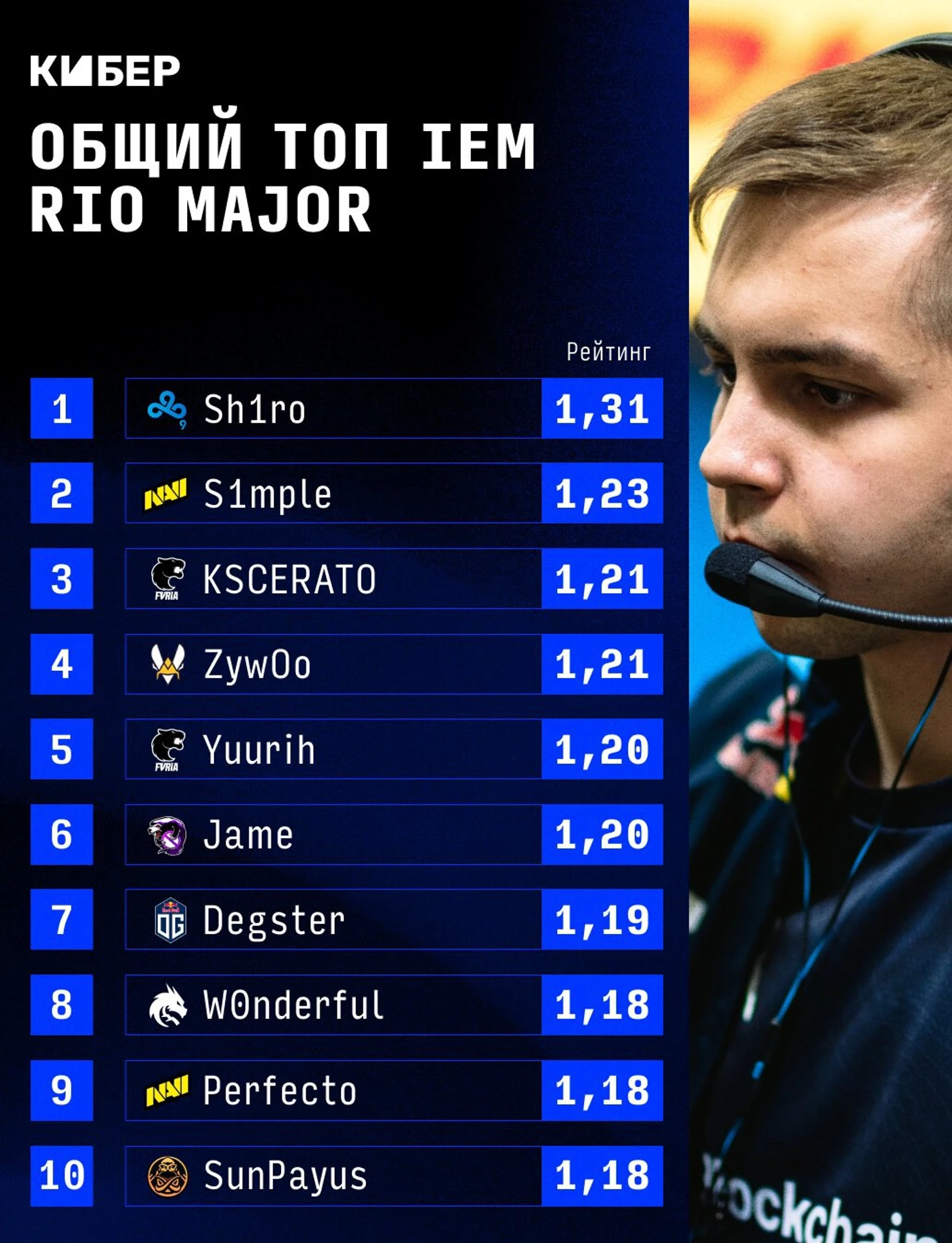 Sh1ro и S1mple лидируют, Perfecto – в топ-10. Рейтинг стадии «Легенд»