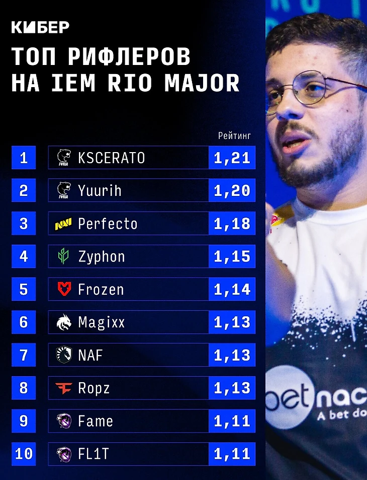 – Элек наиграл на 1,09. Да, он лидирует среди кэпов, но обычно Денис настреливает еще круче. 1,27 в Кельне и 1,29 на RMR тому подтверждение.
