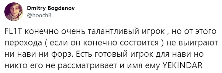 «Существует огромная разница между переговорами с командами из СНГ и клубами из Европы или Азии. В СНГ организации вынуждают вас соглашаться на гораздо менее привлекательные условия по сравнению с тем, что можно получить от европейских команд. Сами переговоры ведутся крайне агрессивно. Например, клуб может сделать предложение и потребовать от вас решить все за один день. Мне кажется, наши клубы стремятся согласовать с составами минимально возможную зарплату, чтобы затем заработать побольше на продаже стикеров. Некоторые организации из СНГ даже хотели включить в наши контракты пункт, который позволяет им в одностороннем порядке расторгнуть все соглашения, если мы вдруг покинем топ-30 рейтинга HLTV. Мне этого не понять, потому что мы уже проявили себя на сцене. Мы молодая команда, которая уже три месяца держится в тридцатке лучших в мире. И видеть такое отношение к себе неприятно, поэтому мы бы предпочли вести переговоры с зарубежными организациями, хотя в глубине души мы все очень любим наш регион».