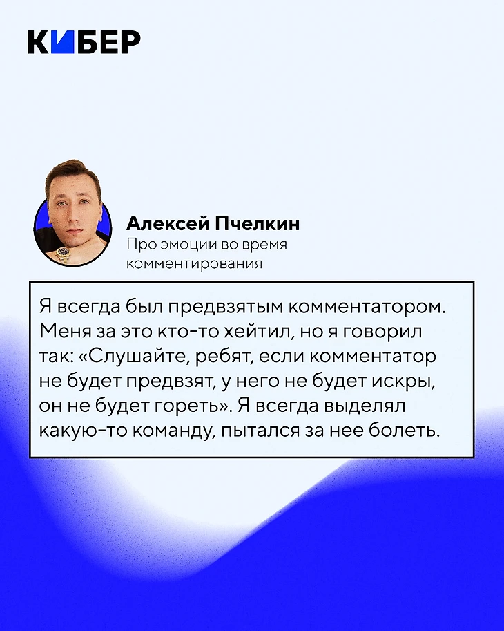 – Я всегда был комментатором, который был предвзят. Меня за это кто-то хейтил, но я говорил так: «Слушайте, ребят, если комментатор не будет предвзят, у него не будет искры, он не будет гореть». Я всегда выделял какую-то команду, пытался за нее болеть. В каких-то моментах выглядело спорно, но я старался держать себя в колее и балансировать, чтобы не топить одну и не выделять другую. Пытался находить у одной минусы – у другой минусы, у одной плюсы – у другой плюсы. Не всегда это получалось.