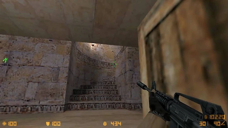 Еще одно революционное решение, по тем временам уж точно, – лестницы. На Dust их не было, а на Dust2 появилась – в темке. «На Dust никогда не было лестниц более, чем в пару ступенек, а на этой карте была установлена полукруглая лестница, причем в узком месте. Однако мне нужен был какой-то проход между этими двумя зонами, и лестница, казалось, подходила».