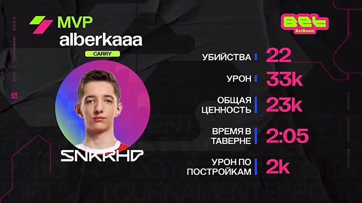 Рики и Инвокер в руках ALBERKAA и B-GOD безо всяких сюрпризов становятся слишком мощными благодаря ранней агрессии и удачным киллам, поэтому SNKRHD без труда становятся победителями заключительной карты дня.