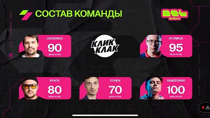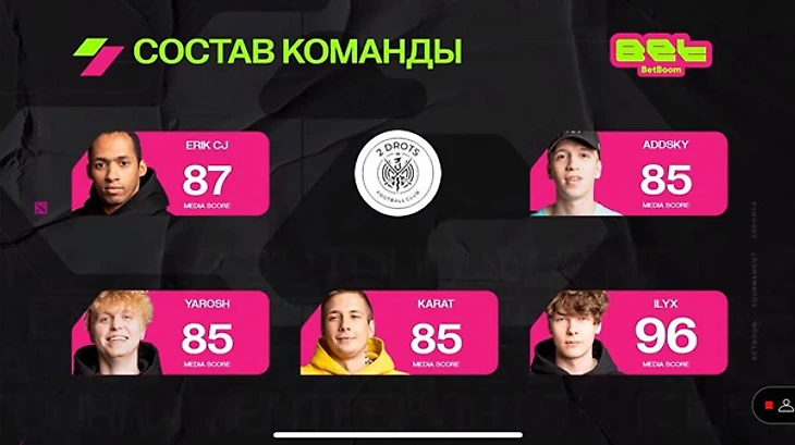 Состав у 2DROTS был привычным: ERIK CJ, YAROSH, KARAT, ILYX, ADDSKY. BetBoom определил фаворитом ожидаемо КЛИК КЛАК, так как их состав значительно превосходил соперников по ммр, коэффициенты были выставлены следующие: 1.20 на их победу и 6.30 на победу 2DROTS.