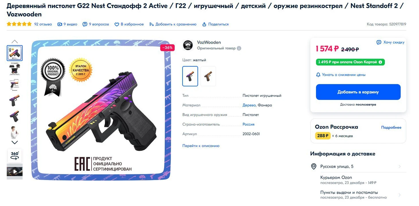 Еще популярны оружия, стреляющие резинками. Они стоят чуть дороже, зато как круто выглядят. Глок «Градиент» стоит 1500 рублей. Намного дешевле, чем в CS:GO.