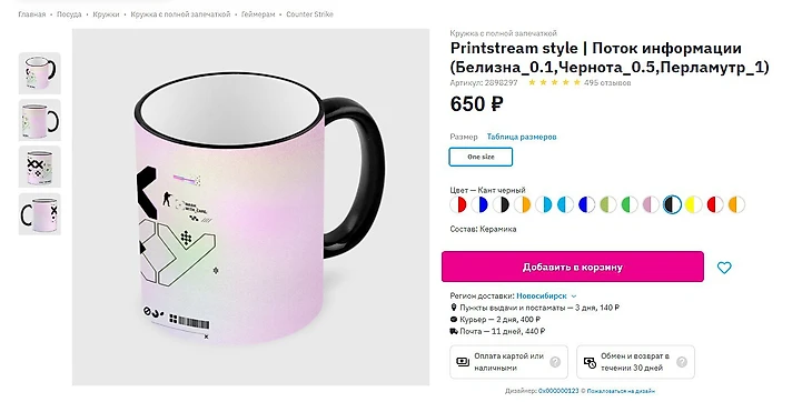Кружку в раскраске «Поток информации» за 600 рублей.