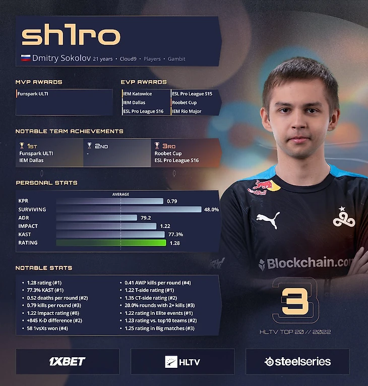 3 место – Дмитрий «Sh1ro» Соколов (Cloud9)