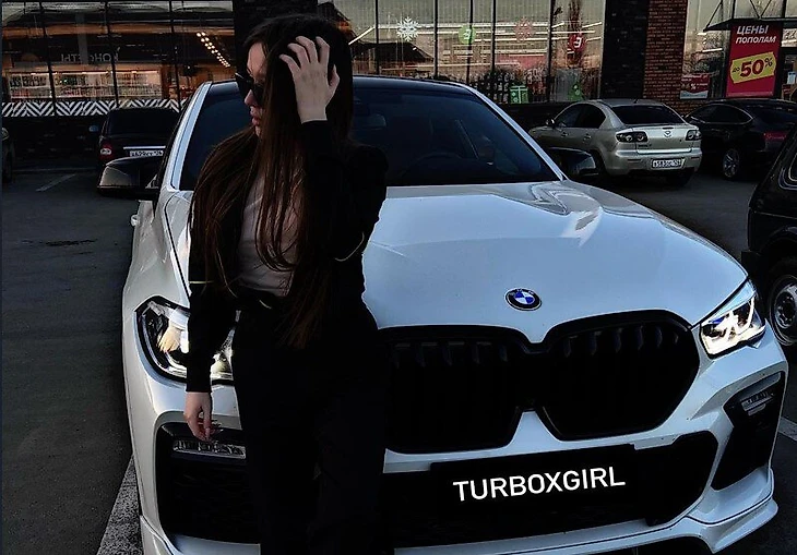 А еще она любит BMW – фотографируется и снаружи, и за рулем авто.