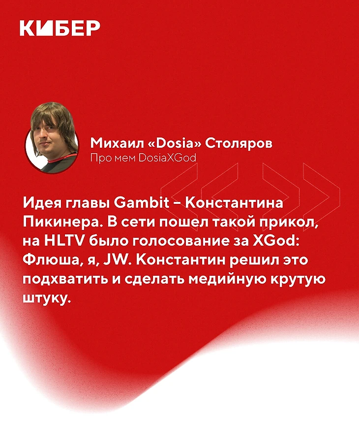 Идея главы Gambit – Константина Пикинера. В сети пошел такой прикол, на HLTV было голосование за XGod: Флюша, я, JW. Константин решил это подхватить и сделать медийную крутую штуку.