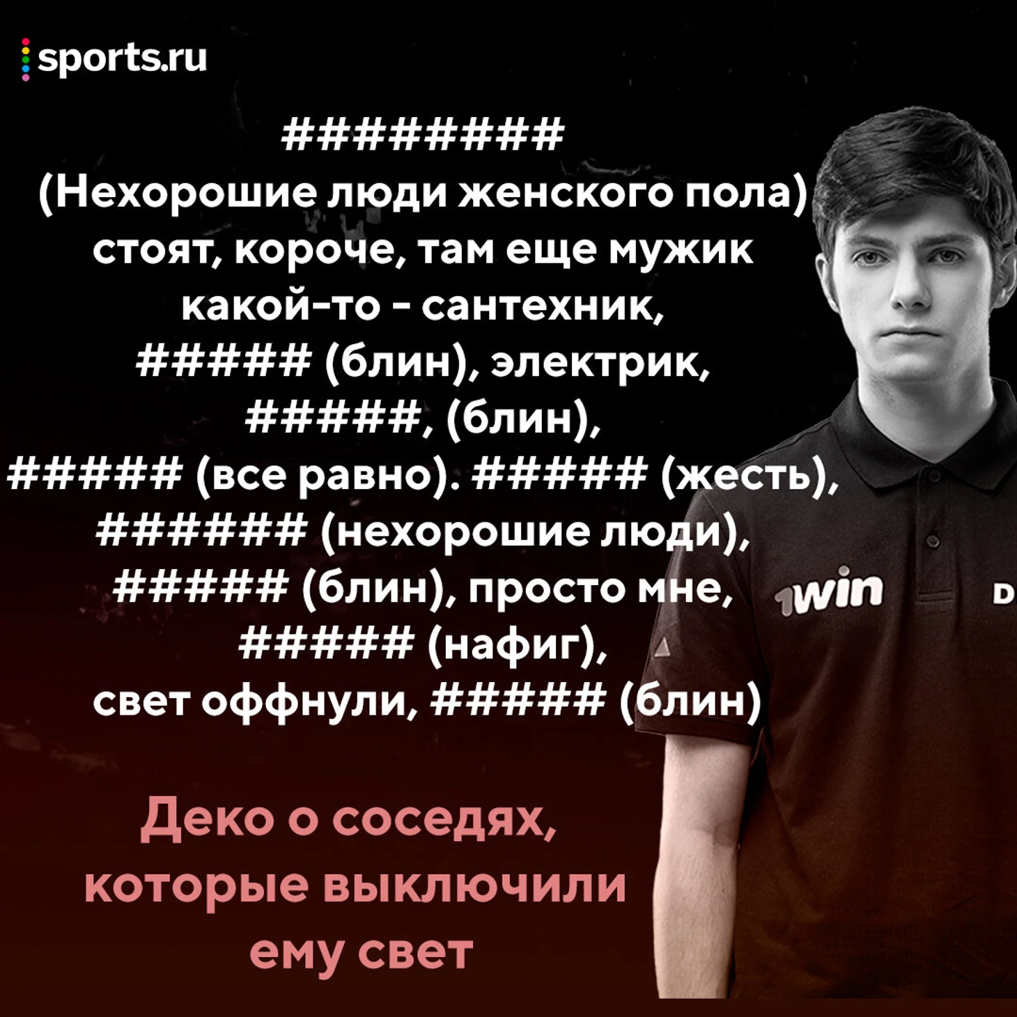 Вообще Деко – дотер по натуре. До него CS не знал таких дединсайдов: «[Кто у вас в банде вообще мораль поднимает?] Да никто ее не поднимает, я ее ##### [к черту] опускаю моментально, ##### [блин]. Мы, короче, праки начали играть. Я так, ##### [нафиг], ныть начал, и мы все праки на следующий день отменили».