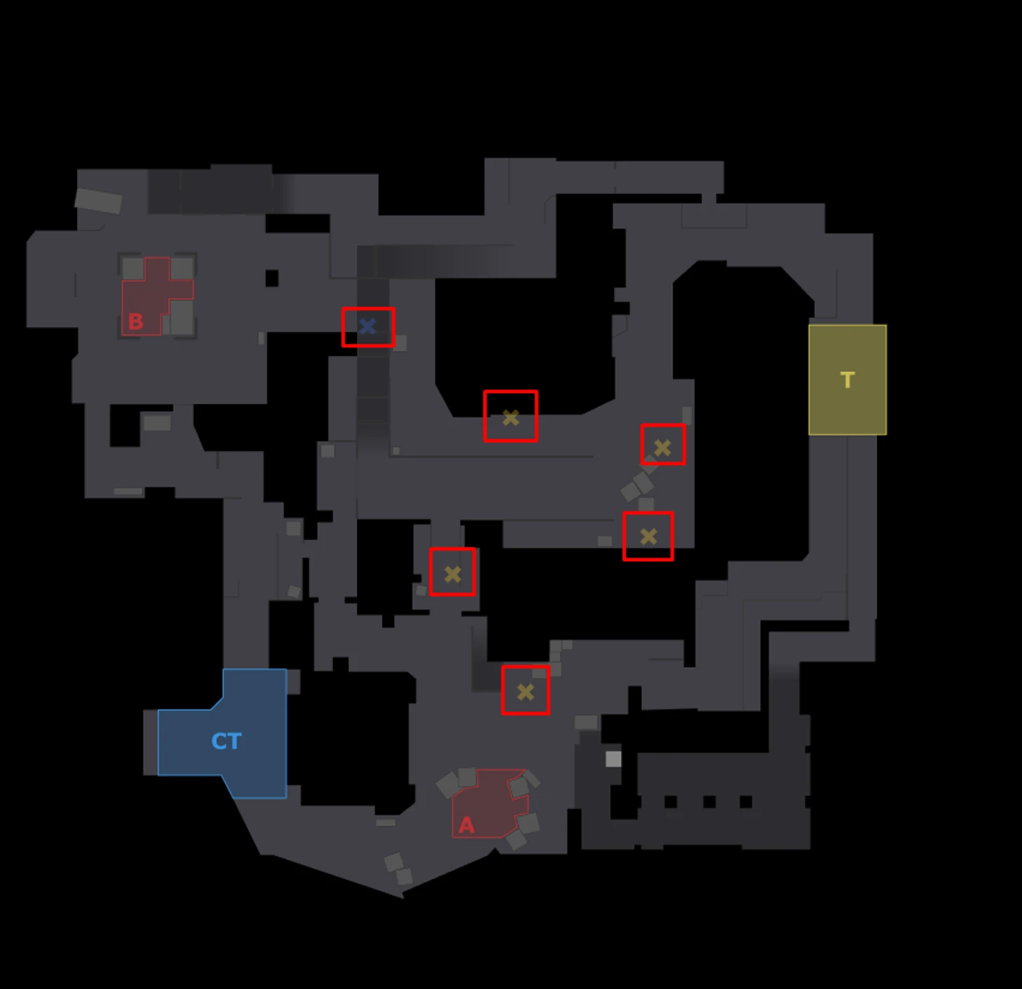 А еще на Overpass очень много шума наводит Zorte, снайпер команды. Так выглядит тепловая карта фрагов Zorte – снайпер кажется вездесущим.