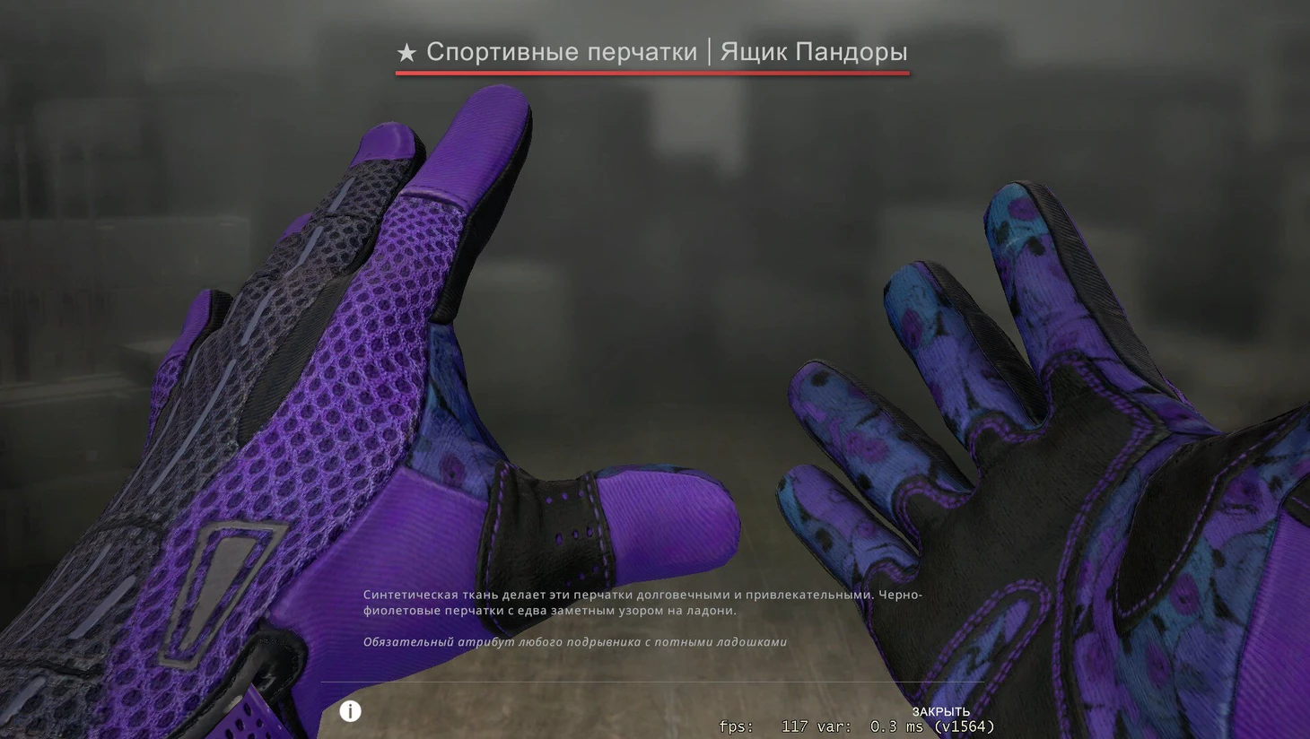 Идеальные перчатки для такого ножа – темно-фиолетовые «Ящик пандоры» за 1,5 миллиона рублей в качестве «Немного поношенное». Такие же, но «прямо с завода» будут стоить в два с половиной раза дороже: 3,7 миллиона рублей!
