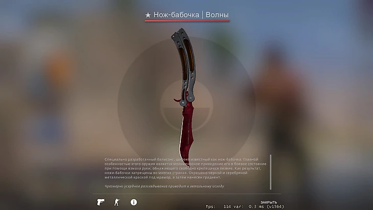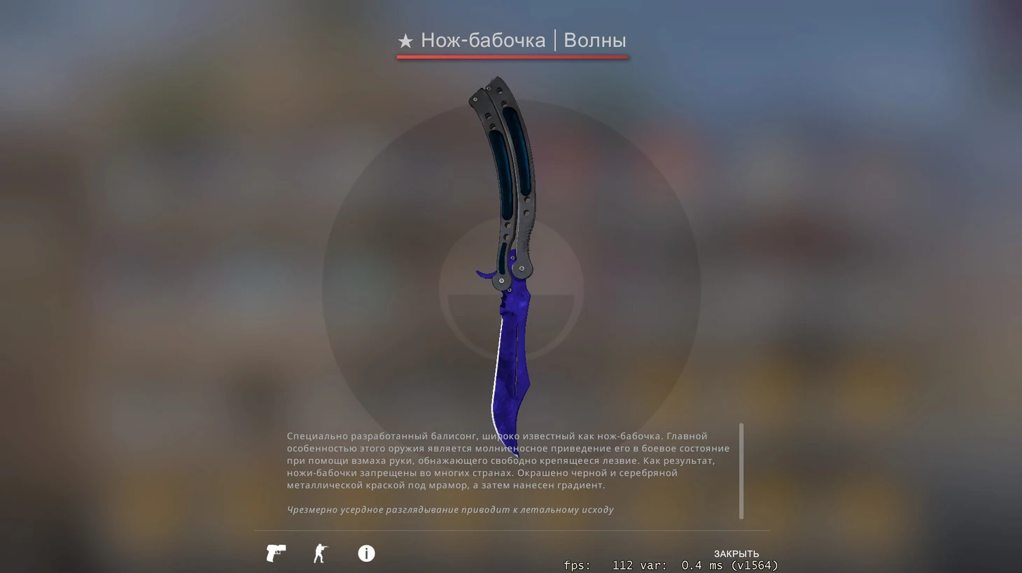 Среди новых скинов у Валерия появился нож-бабочка «Волны Сапфир» в качестве «прямо с завода» за 2,1 миллиона рублей. Сейчас она на втором месте в игре по стоимости среди всех ножей. Дороже лишь бабочка в раскраске «Гамма-волны изумруд».