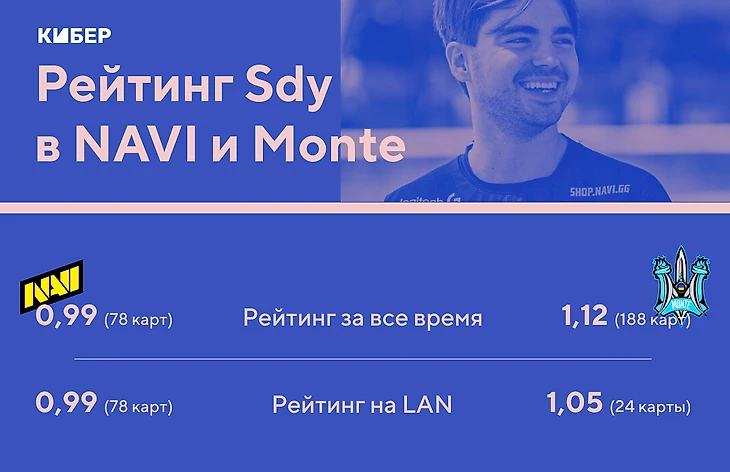 После ухода из NAVI, Sdy стал играть намного лучше. Виктор капитанит в Monte, но при этом и по статистике виден сильный прогресс. В новой команде у него стало больше свободы, к тому же он стал играть на более комфортных позициях. Но насколько сильно улучшился рейтинг Sdy? Мы сравнили его за время в NAVI и Monte.