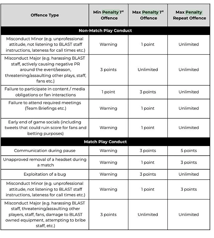 совершать серьезные проступки (сюда входят притеснение сотрудников BLAST, угрозы/нападение на других игроков, сотрудников или фанатов, причинение урона инвентарю BLAST, попытки подкупить сотрудников и так далее). За это игроки получают самое строгое наказание.