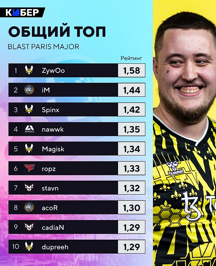 Мейджор в Париже закончился тотальной доминацией Vitality: 0 проигранных карт и долгожданная победа для Zywoo. Не сюрприз, что именно Матье получил MVP. Но в рейтинге много других неожиданных результатов и игроков-открытий турнира.
