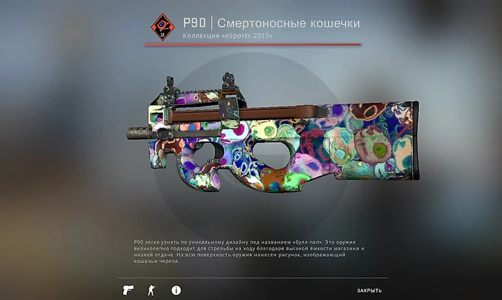 Во-первых, скины из таких кейсов не понравились игрокам. Они были сделаны Valve, а не комьюнити и выглядели намного скучнее. Например, в eSports 2013 тайным скином был P90 «Смертоносные кошечки», а в первом оружейном – AWP «Удар молнии».