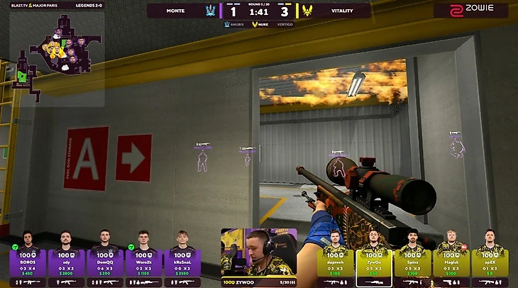 А потом смотрим матч с Монте, в котором Vitality начинала в атаке. За 15 раундов Zywoo взял AWP лишь 3 раза. Что он с ней делал? Ну, смотрел поджим будки. Еще 2 раза умер первым.