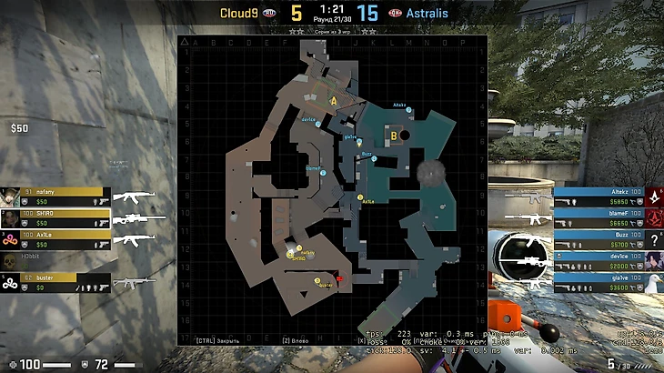 Такая атака не дает максимально раскрыться двум сильнейшим игрокам состава – Широ и Аксилю. Вместо поиска энтри, они вынуждены подолгу сидеть чуть ли не на стартовых позициях. Cloud9 нужно больше агрессии: можно искать энтри в начале раунда, можно больше пользоваться гранатами, чтобы выманить откидку противника. В 2021 году многие оказались не готовы к такому стилю от них – противники терялись и умирали в поджимах.