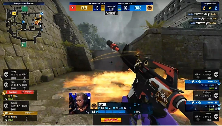 Ancient стартовал шикарно для Faze: что может быть прекраснее 7-1 в начале? А снайпер Ence Sunpayus восемь раундов подряд бегал с нулем в графе фрагов (спойлер: он закончил матч с лучшим рейтингом). Но в том числе с помощью его квадро-килла начался мини-камбэк Ence в первой половине.
