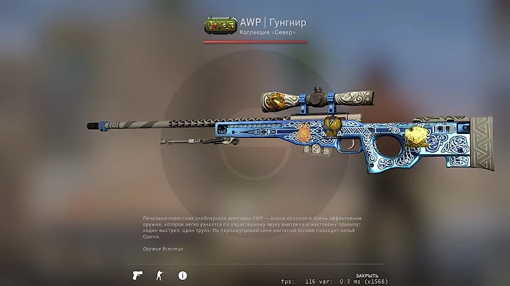 AWP «Гунгнир» стоит столько же, но у бразильца наклеен автограф бразильца HEN1 за 130 тысяч рублей. А вот наклейка «История о драконе» совсем не смотрится на таком скине, наклеить ее на «Гунгнир» – то же самое, что и надеть носки Nike к кроссовкам Adidas.