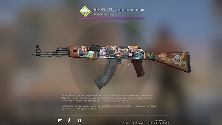 Например, вот такой AK-47 «Путешественник» стоит больше ста тысяч рублей. Скин нельзя назвать красивым, он выглядит лишь как небольшая доработка стандартной пушки.