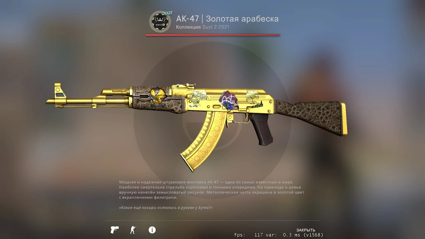 И куда же без золотого AK-47, который есть в инвентаре у любого богатого игрока. Скин с натяжкой можно назвать красивым, но его популярность вполне объяснима любовью к роскоши. Вариант как у Неймара обойдется в 450 тысяч рублей.
