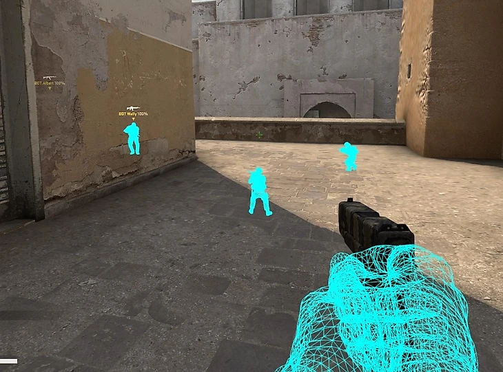 Следующий шаг – включение самого вх. За это отвечает консольная команда r_drawothermodels. Для включения валлхака нужно ввести команду r_drawothermodels 2. Вот как это вх выглядит в самом CS:GO: