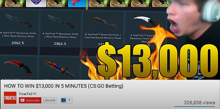 В 2015 году рулетки и букмекерские конторы, работающие со скинами, процветали. Bloomberg подсчитал, что за год было сделано ставок на 2,3 миллиарда долларов! С каждым месяцем рулеток становилось все больше, ведь их активно рекламировали ютуберы. ProSyndicate и TmartN были популярными блогерами с общей аудиторией в 10 миллионов человек. Они постоянно записывали видео с игрой на рулетке и нигде не говорили о рекламе или спонсорстве. Все выглядело, словно они случайно заходили на сайт с сотней долларов, а через двадцать минут выводили уже с тысячами.