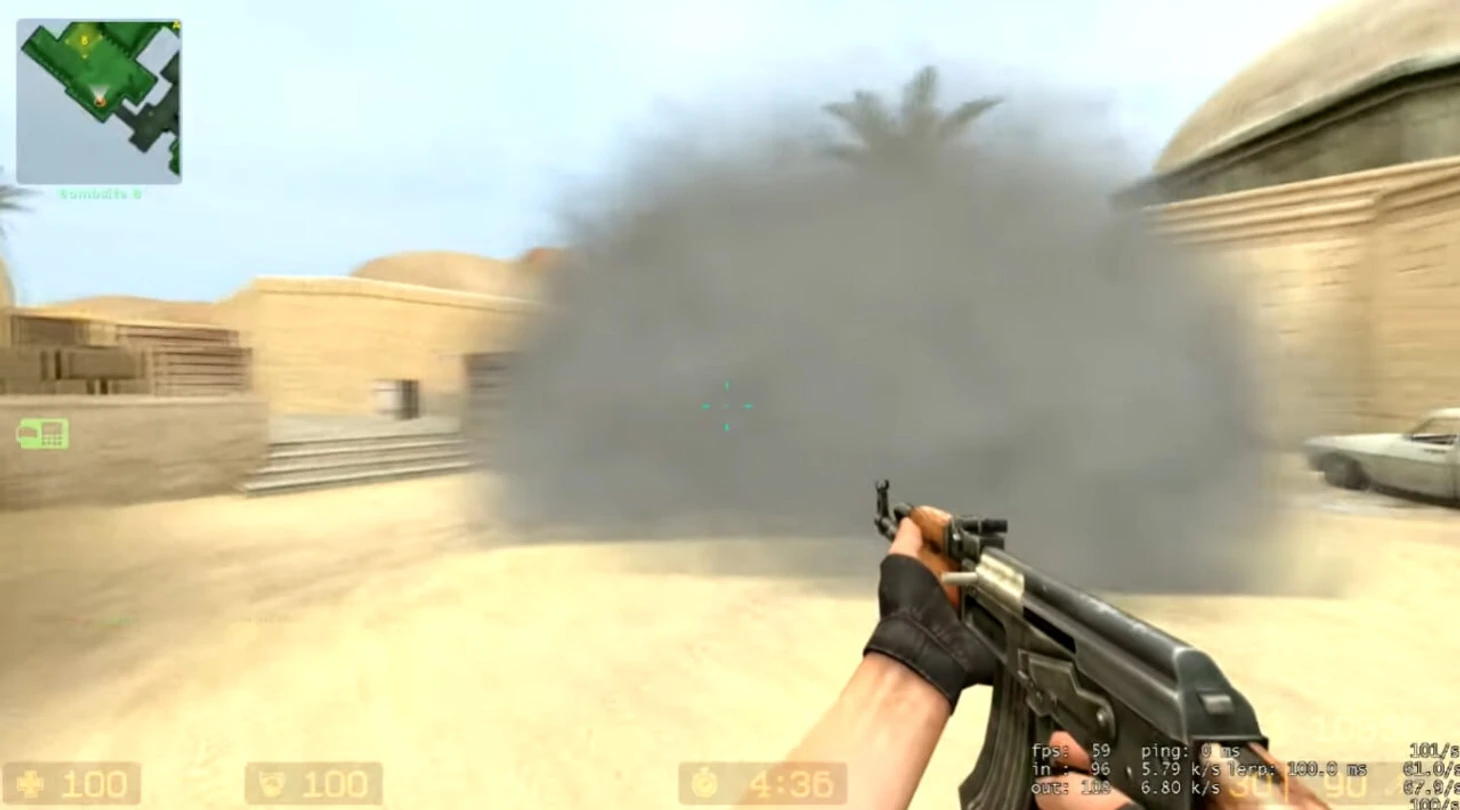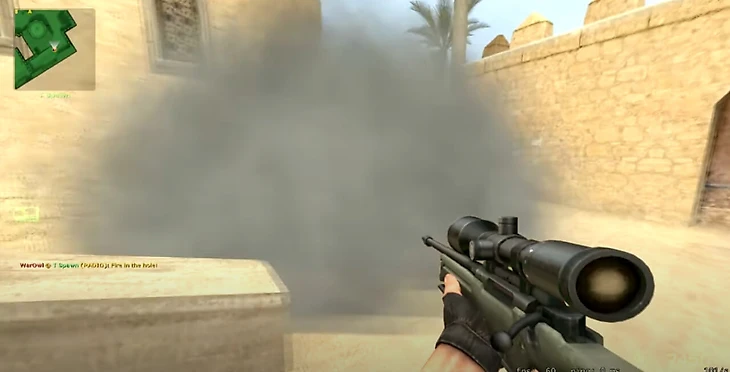 Вот CS 1.6. Тогда смок был не таким полезным, как сейчас. Он был чуть ли не прозрачным. А если встретить соперника в таком дыму, то вы не просто упретесь друг в друга, но еще и прекрасно увидите.